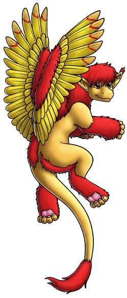 Kozienei (pronounced koh-zee-NAY, usually in a surprised shriek) is an ambush predator, specializing in ankles and tail floof. She lies in way in low places around the Keep awaiting someone walking by, then bam! boots are getting chewed, or if not clothed, gummed with menacing growls at the very least. Her partner in crime is Nielue, so if your toes or tail have been savaged, your head and wings aren't far behind.