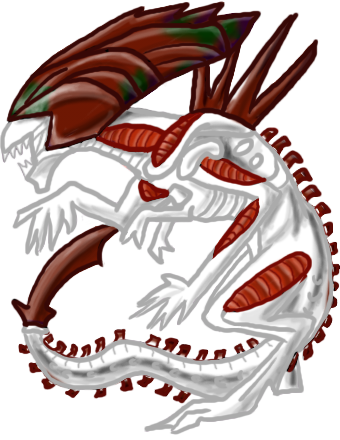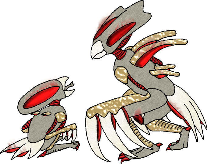 What's this? A gristle grey-bone white-blood red-gold xenochick queen from The Rookery. (She can link in a hivemind with other xenocreatures and sheds edible chitin! Please see Zekiran#6385 for unique flavours, powers, size and personality traits.)