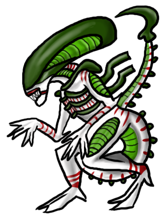 What's this? A white-red xenochick queen from The Rookery. (She can link in a hivemind with other xenocreatures and sheds edible chitin! Please see Zekiran#6385 for unique flavours, powers, size and personality traits.)