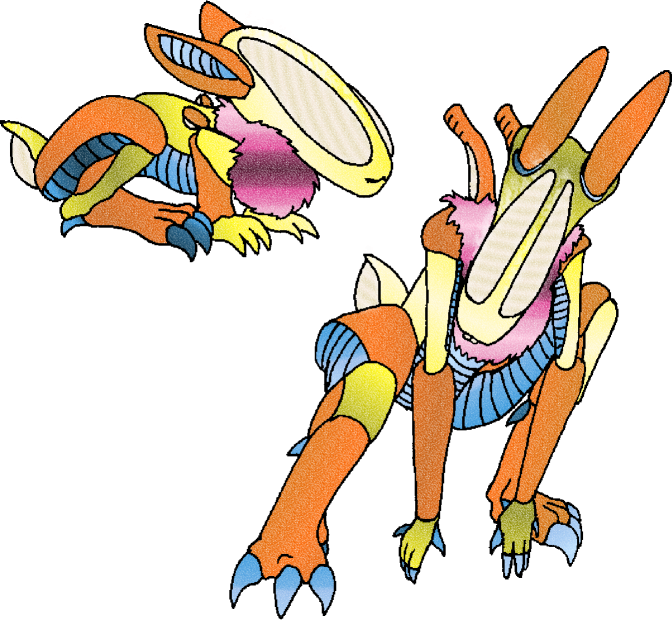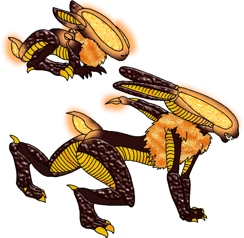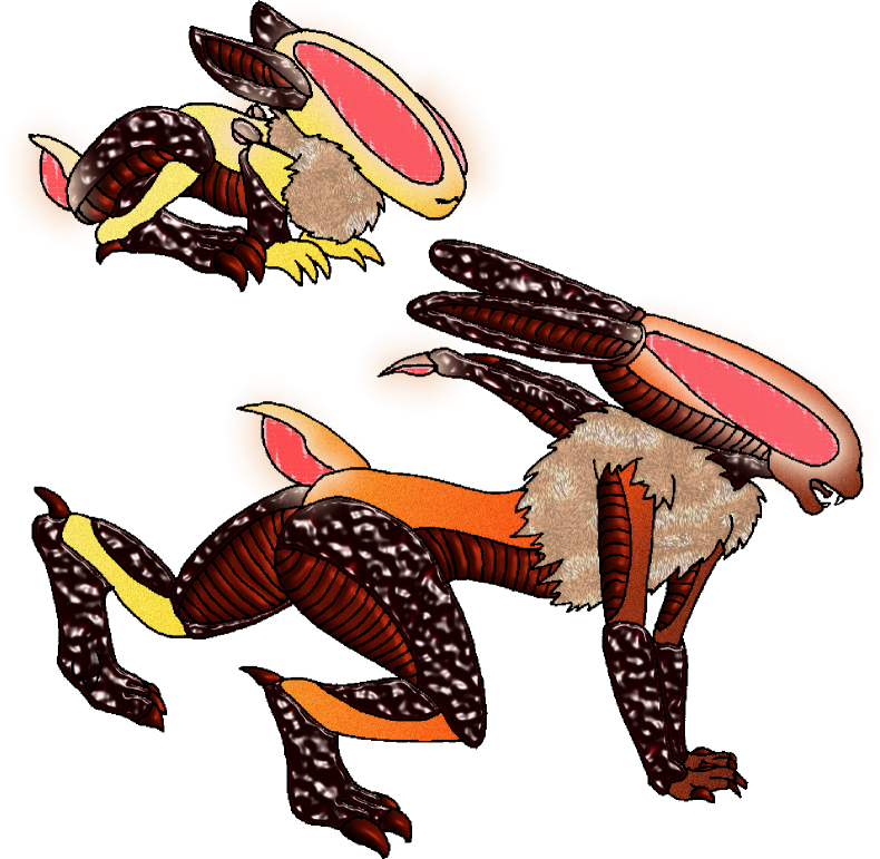 What's this? A brown-orange-yellow xenobun warrior from The Rookery. (They can link in a hivemind with other xenocreatures and shed edible chitin! Please see Zekiran#6385 for unique flavours, powers, gender, size and personality traits.)