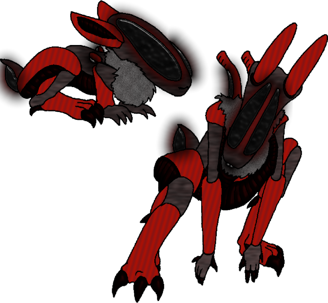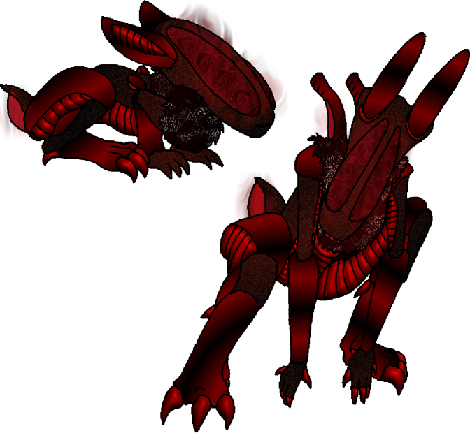 What's this? A red-black xenobun queen from The Rookery. (She can link in a hivemind with other xenocreatures and sheds edible chitin! Please see Zekiran#6385 for unique flavours, powers, size and personality traits.)