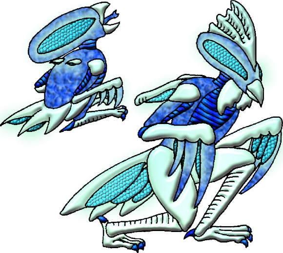 What's this? A variblue xenochick warrior from The Rookery. (They can link in a hivemind with other xenocreatures and shed edible chitin! Please see Zekiran#6385 for unique flavours, powers, gender, size and personality traits.)
