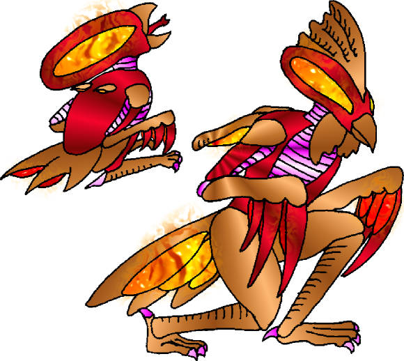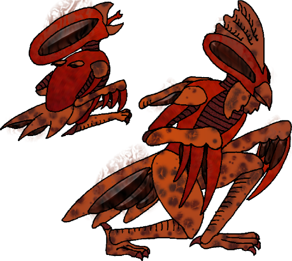 What's this? A grounds-and-sludge brown-red xenochick warrior from The Rookery. (They can link in a hivemind with other xenocreatures and shed edible chitin! Please see Zekiran#6385 for unique flavours, powers, gender, size and personality traits.)