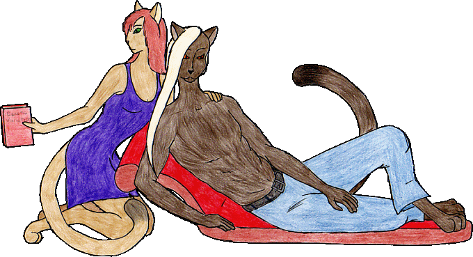 Tehani and her mate hail from the planet Malnev, where they once lived as part of one of the technologically advanced continental tribes. At their ranking ceremony, the childhood sweethearts were ranked as Seekers, and after finalizing their pairing were sent off-world. Their destination was Star City, and their task was to investigate the magitechnology that made the space station so well known. While neither the Fate nor its counterpart, the Abstract Destiny, were at the station at the time they visited, they still discovered geneticists of lesser ability aboard the station, and spent many months learning about genetic manipulation. When they returned to their tribe with the new knowledge and tools, they went right to work implementing the things they had learned. The species they chose to work on was not their own, but the much-treasured hunting cats of their tribe. The tribe was not at all enthusiastic about their doings, and once litters were born that revealed the pair had succeeded at introducing new colors into the gene pool of the prized cats, Tehani and Shihon were forbidden to continue their experiments. With no reason to remain with their tribe, they returned to Star City not long after the Fate had resumed lurking in the station's vicinity. Far more intrigued by Dritanys's methods than those of the far more moral Doctor Schroeder, they petitioned the tycharis for an interview, and were hired soon after that. |